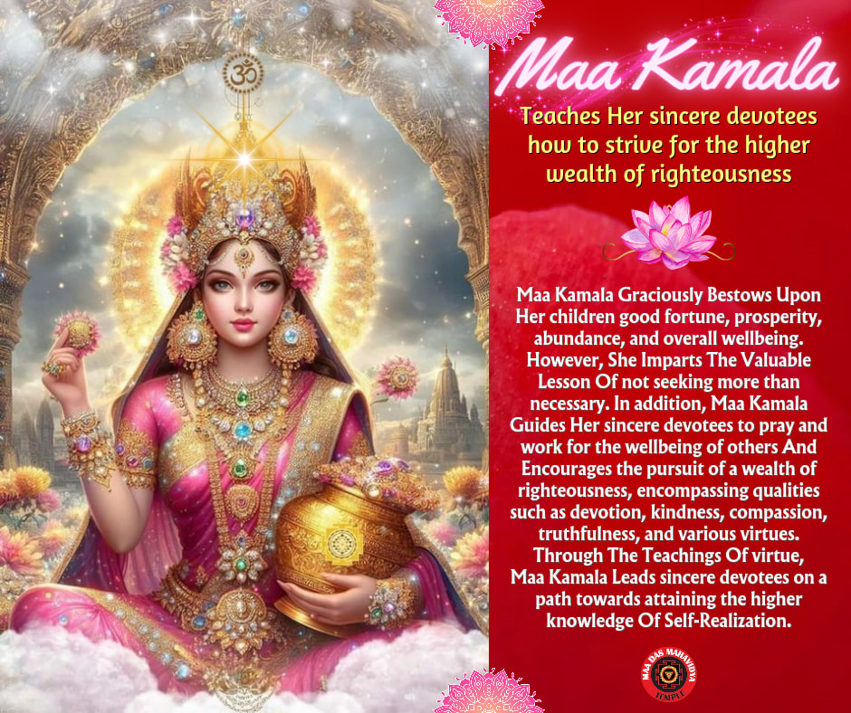 Maa Kamala teaches her sincere devotees how to strive for the higher wealth of righteousness